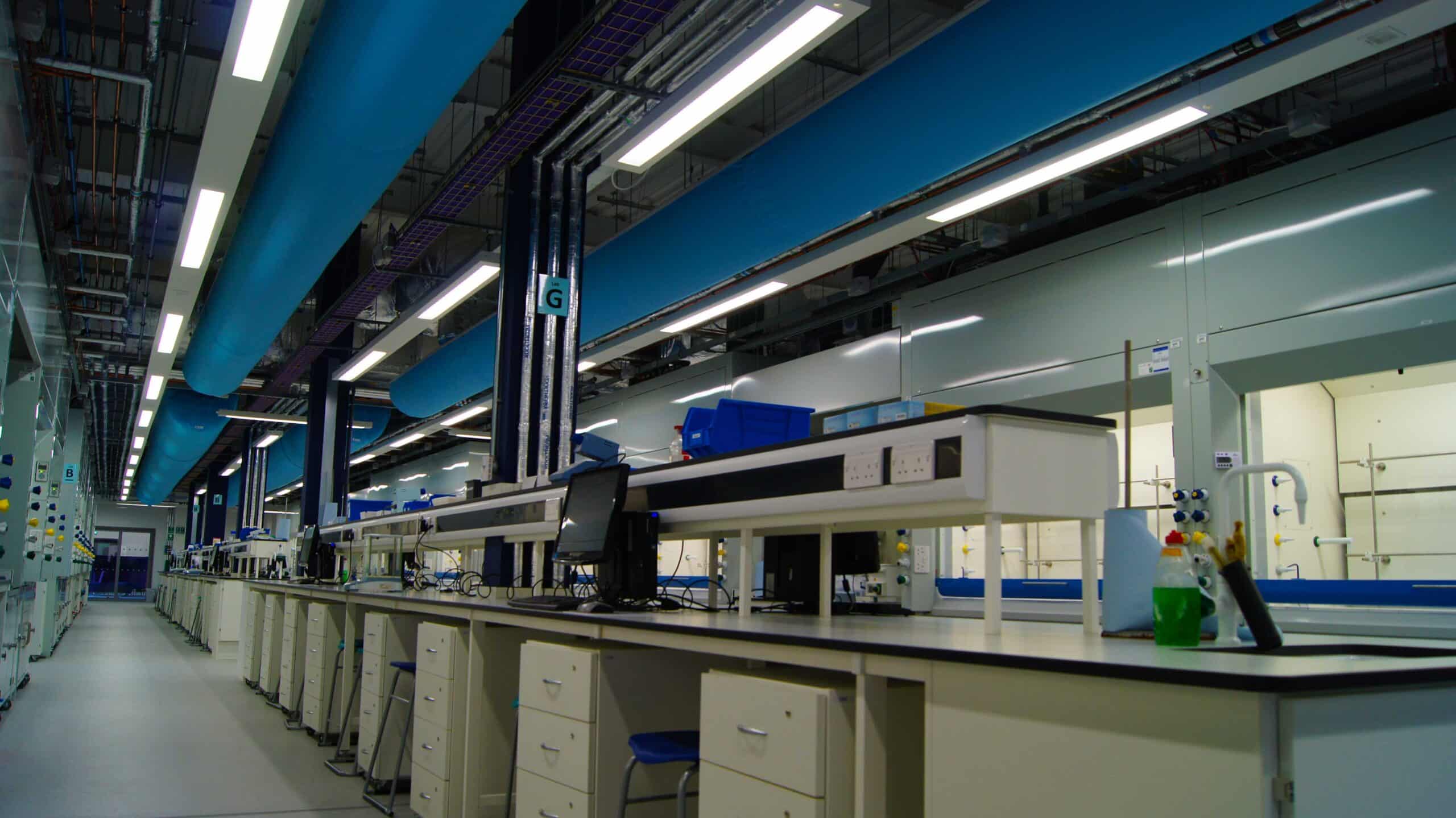 The labs are well furnished and make up air is supplied into all areas with fume cupboards to overcome the air extracted during fume cupboard operation. The supply and extract systems are linked to supply and extract the correct volumes.